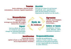 Le cycle de la violence décrit le mécanisme répétitif dans lequel la violence s’installe et se renforce progressivement au sein d’un couple.