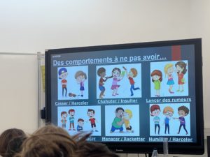 •  Mardi 27 janvier, école d’Afa : les classes de CM2 étaient sensibilisées aux violences (dont le harcèlement) et aux addictions tandis que les classes de CP visionnaient de courtes vidéos dont la thématique commune était la déconstruction des stéréotypes de genre.